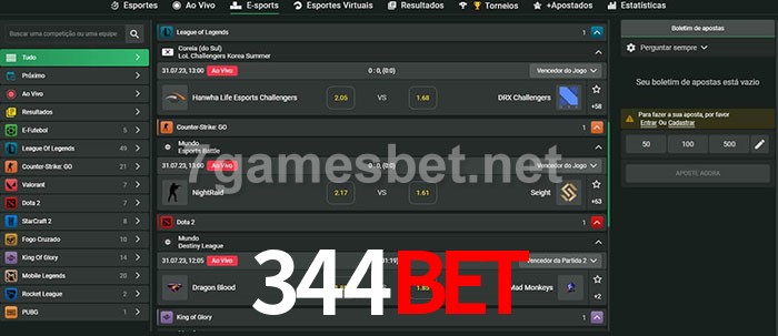 O 344bet oferece uma grande seleção de opções de apostas em e-sports com probabilidades competitivas